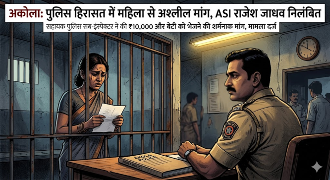 अकोला पुलिस ने वित्तीय धोखाधड़ी के मामले में एक महिला को गिरफ्तार किया है। अदालत द्वारा हिरासत में भेजे जाने के बाद आरोपी महिला को सिविल लाइंस पुलिस स्टेशन में रखा गया है। इसी बीच, बीती रात पुलिस स्टेशन में तैनात एएसआई राजेश जाधव ने महिला से शारीरिक संबंध बनाने की मांग की। उसने महिला को पैसों का लालच देकर फंसाया और उससे चौंकाने वाली मांग की कि वह उसे (बेटी को) शारीरिक संबंध बनाने के लिए भेजे।