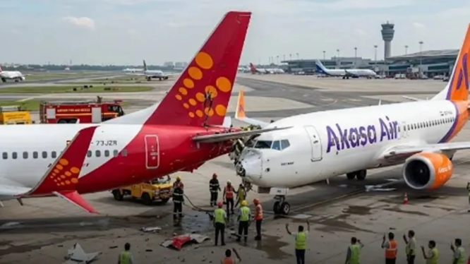 अधिकारियों ने यह जानकारी दी। अधिकारियों ने बताया कि यह घटना अपराह्न करीब 2:15 बजे हवाई अड्डे के टर्मिनल-1 पर हुई, जब अकासा एयर का विमान उड़ान भरने के लिए निकलने वाला था और स्पाइसजेट का विमान पार्किंग स्टैंड की तरफ जा रहा था। उन्होंने बताया कि अकासा एयर का विमान दिल्ली से हैदराबाद के लिए उड़ान QP-1406 संचालित करने वाला था, जबकि स्पाइसजेट का विमान लेह से आया था।