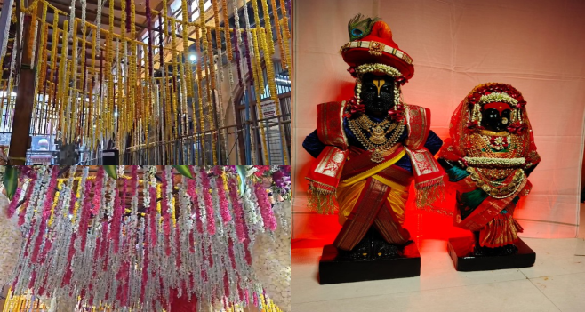 फूलों से सजा विठ्ठल–रुक्मिणी मंदिर