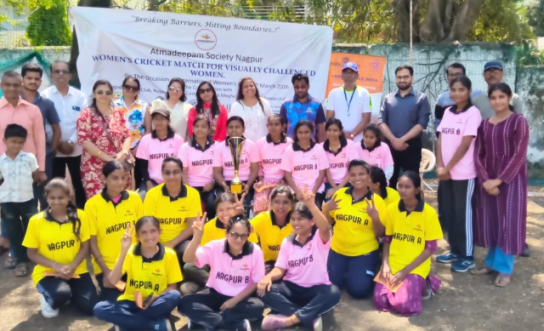 नागपुर:अंतरराष्ट्रीय महिला दिवस के अवसर पर नागपुर में दृष्टिहीन महिलाओं के लिए एक विशेष और प्रेरणादायी क्रिकेट मैच का आयोजन किया गया। यह पहल आत्मदीपम सोसायटी, नागपुर द्वारा नागपुर महिला क्लब और नागपुर लेडीज सर्कल के सहयोग से की गई। यह रोमांचक मुकाबला नागपुर के कुर्वेज न्यू मॉडल हाईस्कूल ग्राउंड में आयोजित हुआ।