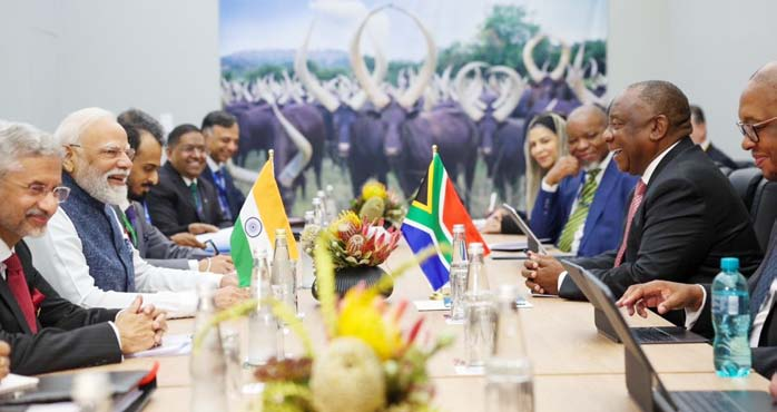लोकवाहिनी, संवाददाता:जोहान्सबर्ग। पीएम मोदी ने जोहान्सबर्ग में हो रहे जी 20 समिट के दौरान दुनिया के 20 ग्लोबल लीडर्स से मुलाकात की। इनमें इटली की प्रधानमंत्री जॉर्जिया मेलोनी, फ्रांस के राष्ट्रपति इमैनुएल मैक्रों समेत कई बड़े अंतरराष्ट्रीय नेता शामिल रहे। मोदी ने रविवार को समिट के तीसरे सेशन में दुनिया को एआई के गलत इस्तेमाल को लेकर चेतावनी दी। उन्होंने कहा कि इससे दुनिया को बहुत बड़ा नुकसान हो सकता है, इसलिए सभी देशों को मिलकर इसके लिए मज़बूत नियम-कानून बनाने चाहिए।