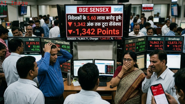 मंगलवार को जब रूस ने बयान दिया कि ‘खाड़ी युद्ध जल्द खत्म हो जाएगा’, उसके असर से शेयर बाजार में तेजी देखने को मिली थी। हालांकि, बुधवार को बाजार उस बढ़त को बरकरार नहीं रख सका। कारोबार के अंत में BSE सेंसेक्स 1.72 प्रतिशत या 1,342.27 अंक की गिरावट के साथ 76,863.71 पर बंद हुआ। वहीं NSE निफ्टी 50, 1.63 प्रतिशत या 394.75 अंक गिरकर 23,866.85 पर बंद हुआ। निफ्टी-50 करीब 11 महीने के निचले स्तर पर दिखाई दिया, जिसकी वजह से शेयर बाजार के निवेशकों के 5.60 लाख करोड़ रुपये डूब गए।