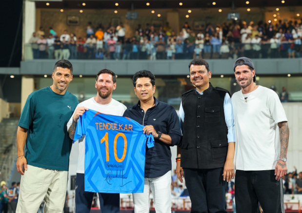 तेंदुलकर का मेसी को स्पेशल गिफ्ट: वानखेड़े स्टेडियम में मुख्यमंत्री फडणवीस और पूर्व खिलाड़ियों से की मुलाकात